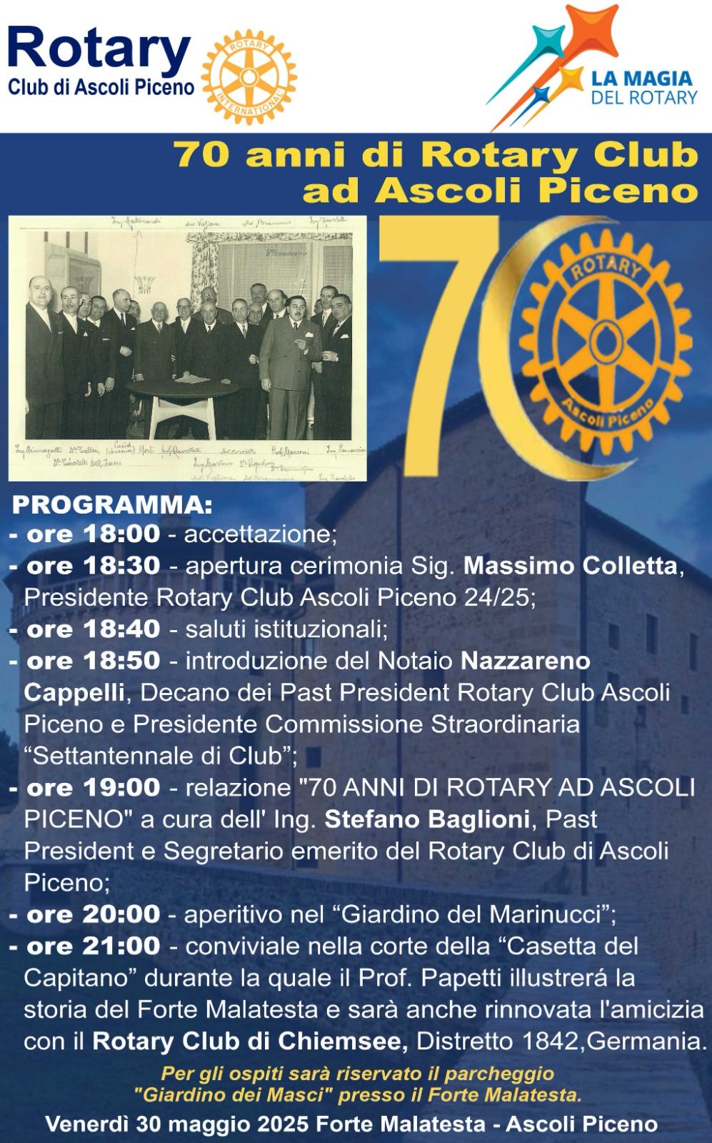Pubblicato il: 30/05/2025 Anniversario della fondazione del Rotary Club di Ascoli Piceno presso il Forte Malatesta ...