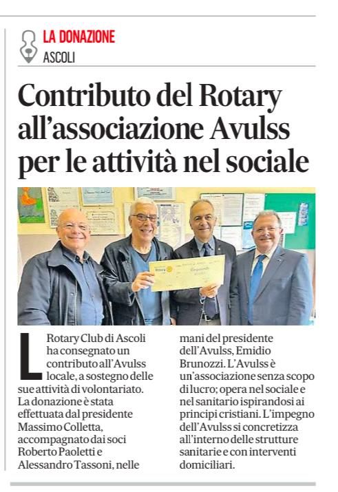 Pubblicato il: 20/04/2025 Contributo del Rotary all'associazione AVULSS per le attivitá nel sociale ...